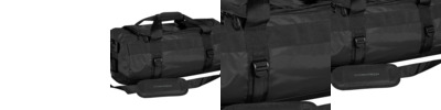 Heavy duty reinforced waterproof fabric. Padded hand grip. Padded adjustable shoulder straps also allow you to carry as a backpack. Main zip compartment. Inner mesh zip pocket. ID pocket.