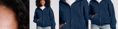 - 8.8-ounce, 70/30 cotton/polyester fleece hood and sleeves