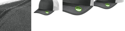 - 100% recycled polyester twill front panels and bill, 100% recycled polyester mid and back mesh panels