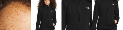 - Contrast, raised, high-definition The North Face logos at left chest and right back shoulder